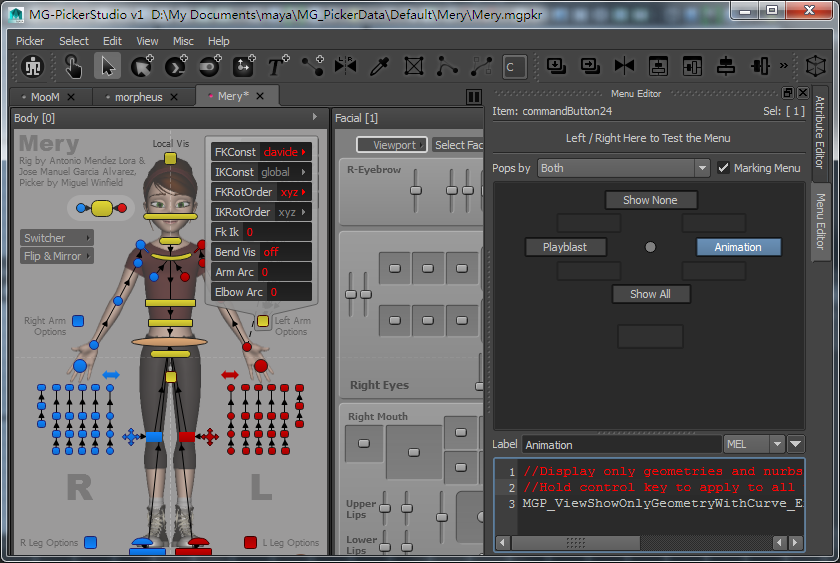 MG-Picker良好强大的交互界面将大大拉近Maya角色跟动画师的距离,同时MG-Picker工作室提供了强大的设计功能,使您可以设计出好莱坞级别的Picker界面而不用key任何代码。